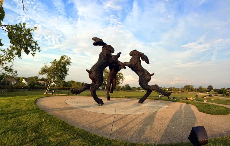 The Ballantrae community features 12 different neighborhoods, over 750 homes, an 18-hole golf course, 62 acres of parkland, 35 acres of lakes and ponds, and the dancing rabbit statue and waterpark. Development in Ballantrae began in 2001, but expansion continues with new builds on the west side of the neighborhood. Ballantrae is located in Dublin, within the Hilliard School District.
